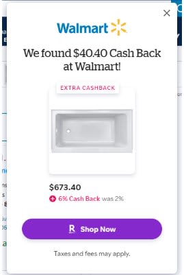 Some product deals may only save you a dollar or two, and some may save you hundreds. While there are a ton of great Prime Day deals, ALWAYS price compare before finalizing any major purchases. Many competing retailers will also mark down on Prime Day and may even beat Amazon’s prices. My tried and true method for preventing myself from getting ripped off this way is using Rakuten. If you haven’t already set yourself up on Rakuten, I highly recommend it, and would greatly appreciate it if you use my referral link here. It’s literally free money you get just for shopping with frequent deals of up to 20% cash back at major retailers. I’ve been using Rakuten since 2018 and have been paid over $5,000 in cash back. There’s no downside. If you are shopping on a mobile device, just open the Rakuten app and type in the product you are shopping for in the search bar to quickly price compare and find which site may also give you cash back. If you are shopping on a desktop/laptop, it’s even easier. After you’ve downloaded their browser extension, if you have a product pulled up on any website, Rakuten will pop up and let you know if the same product is available elsewhere for less, or with cash back. See example below from when I was shopping for a new bathtub this week.